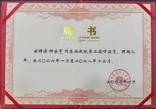 近日,广东四时律师事务所钟乐军律师凭借其深厚的专业素养、丰富的实务经验以及高度的社会责任感,成功获聘为广州市越秀区人民检察院第二届听证员。这已是钟律师连续两届获此殊荣,专业能力与公……[详细]
